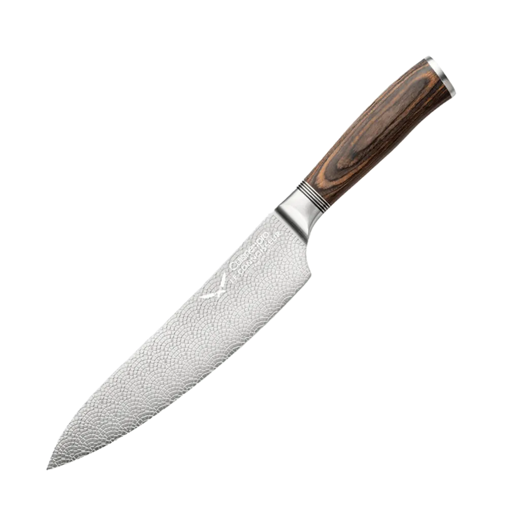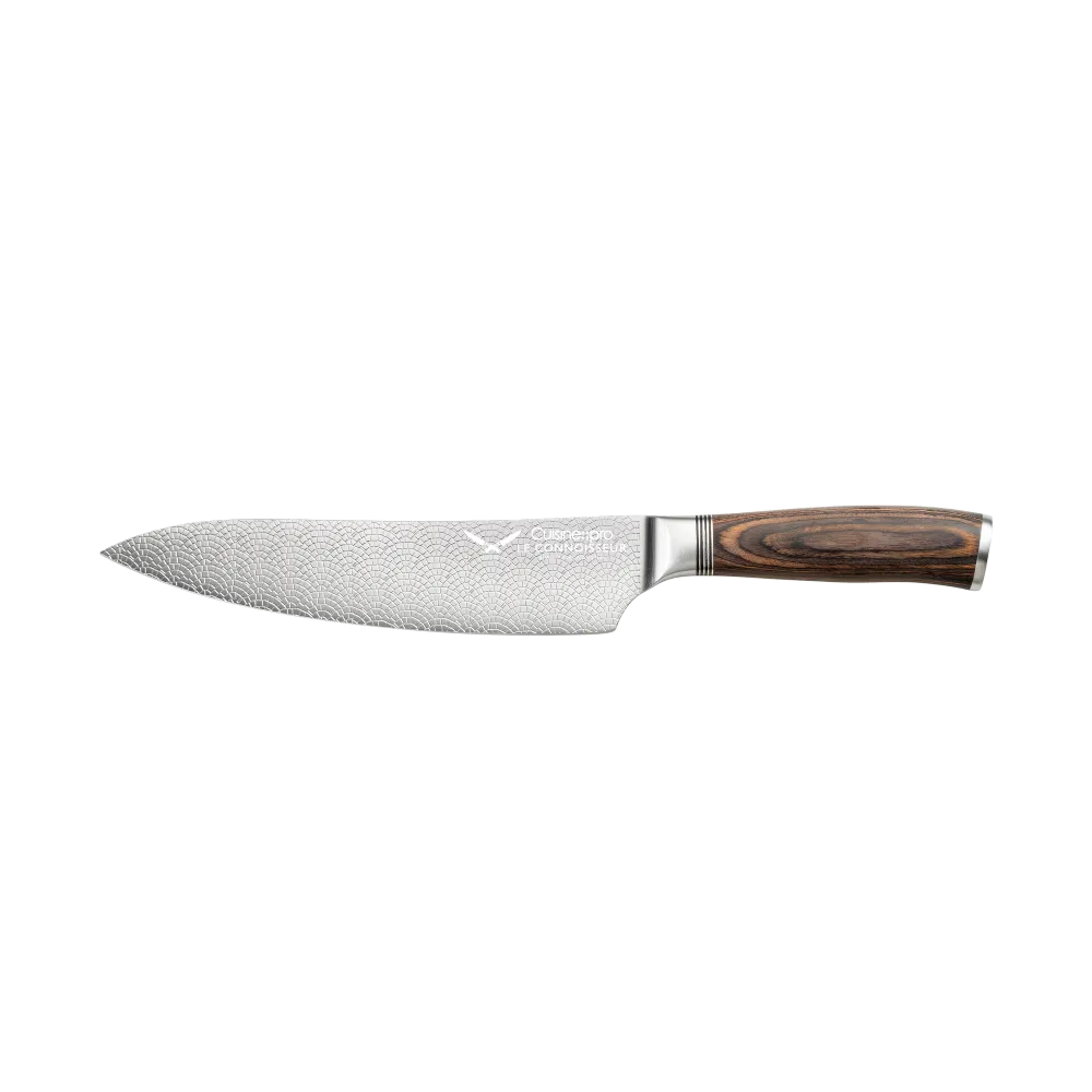 Incorporating a sleek European style, every knife in this refined collection is constructed with a hidden tang, unique cobblestone blade design and features an elegant walnut pakkawood handle, expertly contoured to provide a secure, effortless grip. The combination of premium-quality German stainless steel and a coveted French aesthetic make Cuisine::pro® LE CONNOISSEUR™ knives the preferred choice for serious home cooks that also seek luxury and high-design.